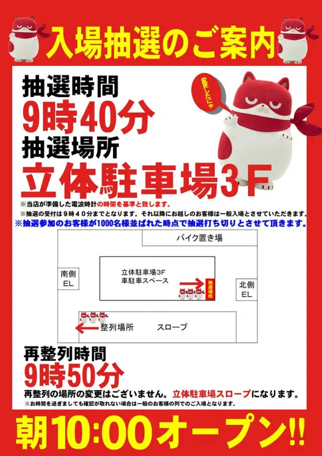 抽選⏰9:40【1000人打ち切り】
