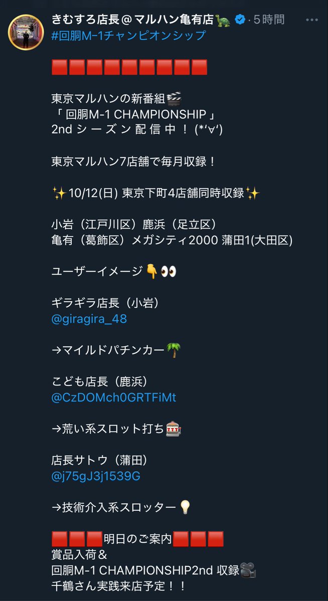 本日はマルハン亀有店様にて「回胴M-1チャンピオンシップ」収録🎥です‼️