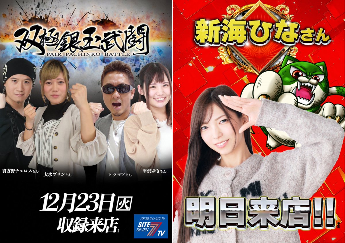 年内ラストの『新海ひな』さんも来店なので演者寄せ(イーター/モンハン)にも期待⁉️ https://twitter.com/slot_ogikiti/status/2002217742943056025