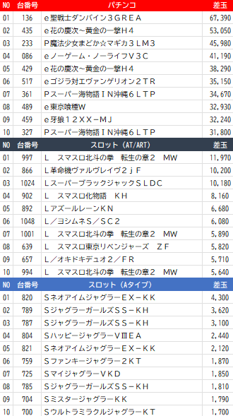 👊北斗の拳 平均差枚 +4,042枚(2/11)
