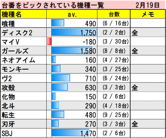 ☕東京喰種 平均差枚+3,009枚(2/11)