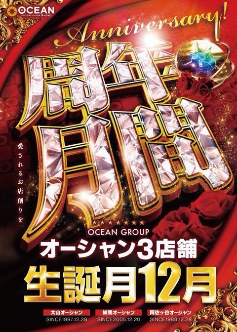 🎂12月はオーシャン3店舗周年月間🎂