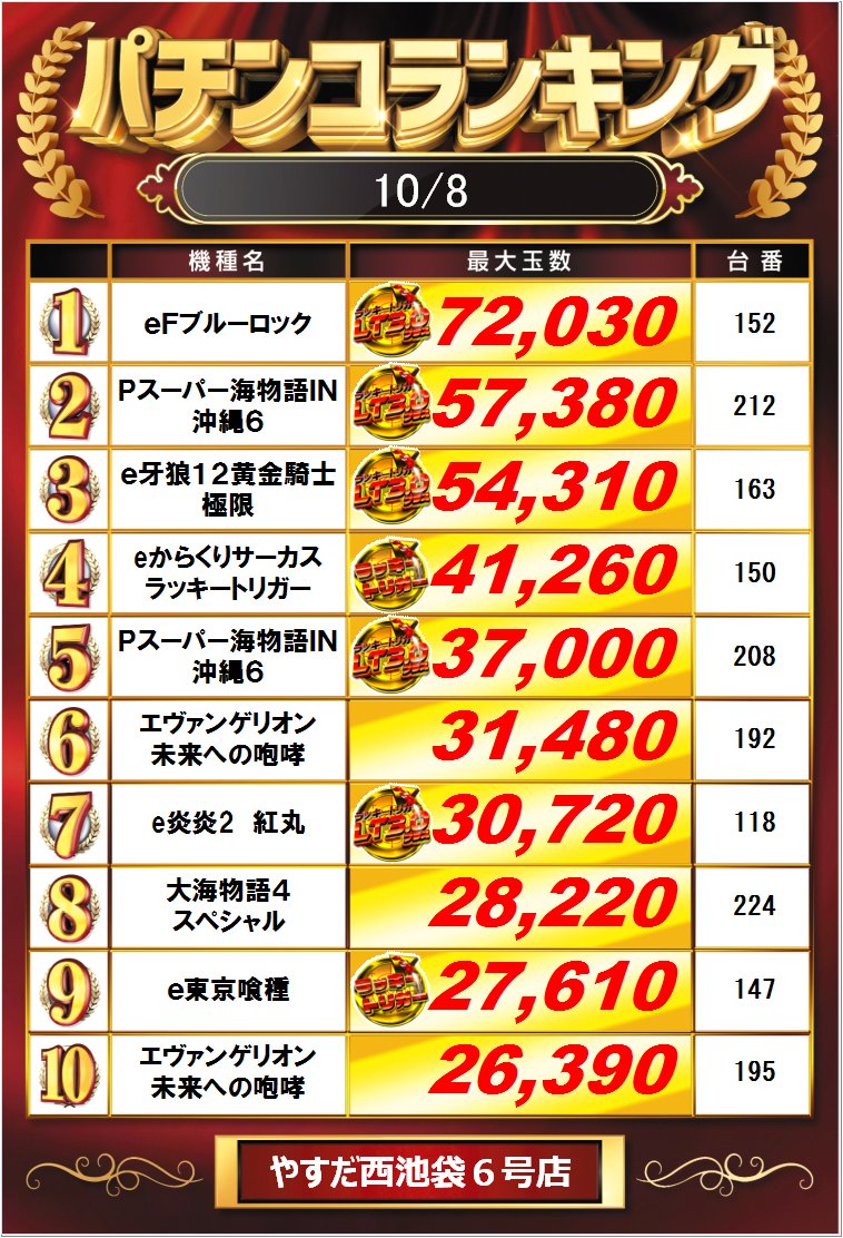 東京はYASUDA9.7が平均350〜400枚とバカつよでしたね👀