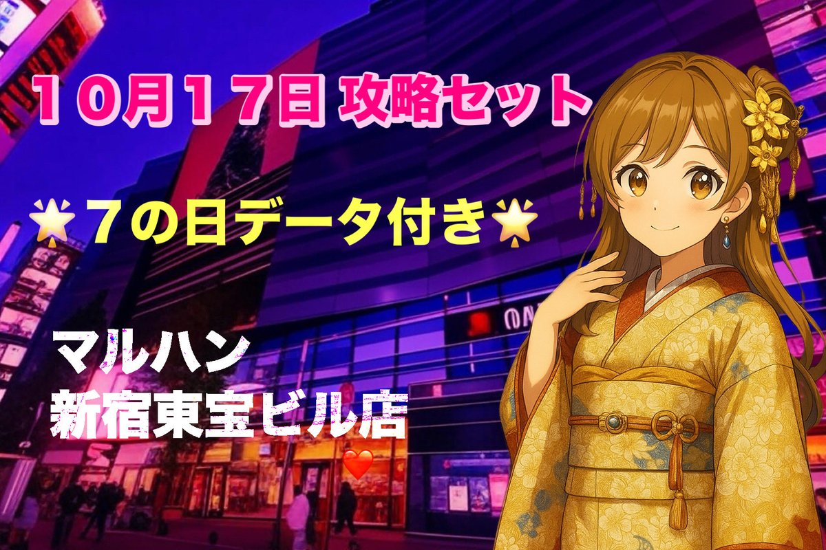投稿本文: 【マルハン新宿東宝ビル店】2025年10月17日(金)の勝ち台予測|スロットAI情報屋 @pachio0725 https://note.com/winning_datalab/n/n62e43931d675?sub_rt=share_pb さらに表示