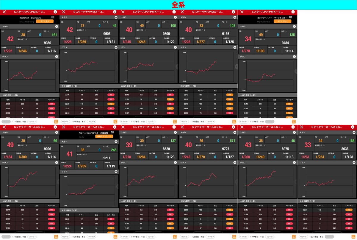 いつも通り、鉄板の末尾⑥+ジャグハナのアナザー末尾が仕掛けの軸。さらに全系も3機種存在。アナザー末尾が絡むハナとジャグにも全あり