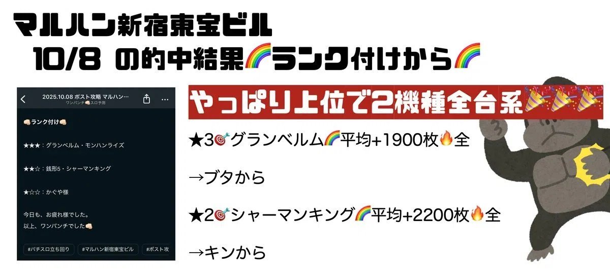 マルハン新宿東宝ビル/池袋/メガシティ 蒲田7/エスパス 新宿 歌舞伎 町/渋谷新館/ピーアーク三田 https://twitter.com/onePunch0101/status/1979232608954597688