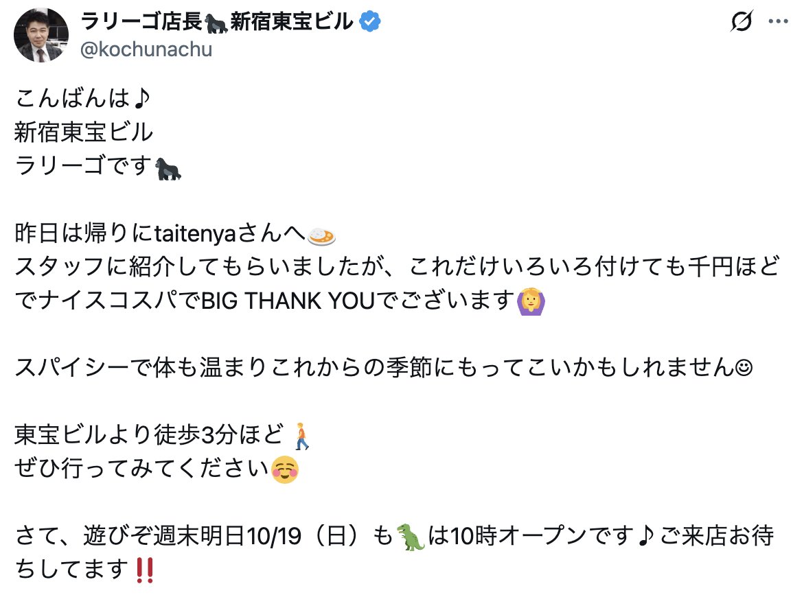 ラリーゴ店長ポスト内のヒントから連想して3段階でランク付けしました👊🏻
