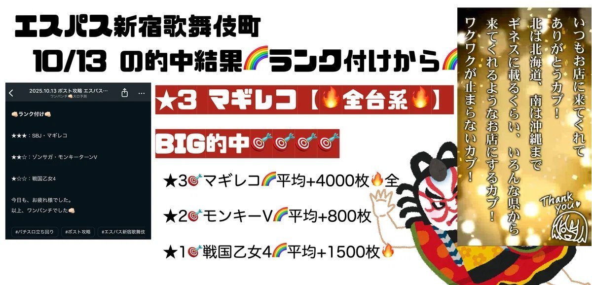 マルハン新宿東宝ビル/池袋/亀有/メガシティ 蒲田 1/エスパス 新宿 歌舞伎 町/渋谷本館 https://twitter.com/onePunch0101/status/1979580243766857775
