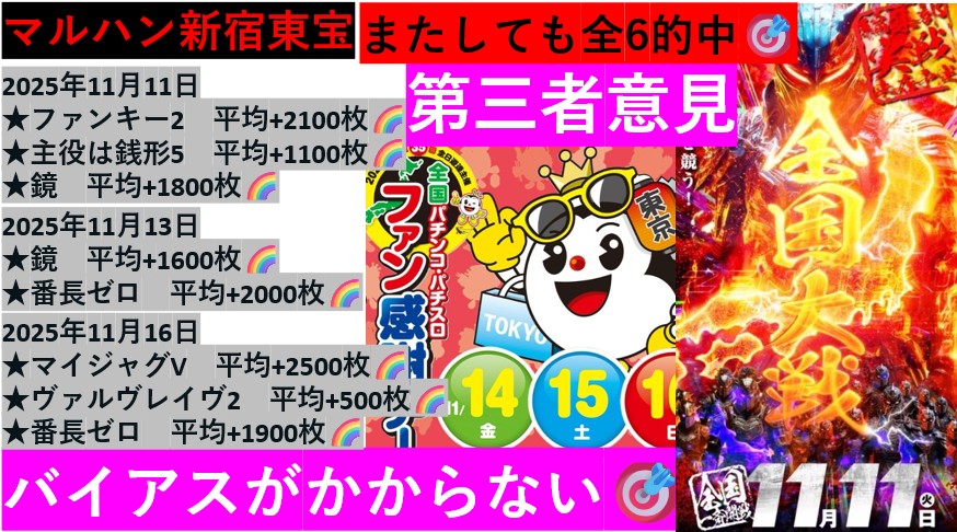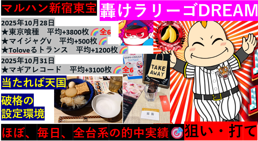 投稿本文: 【マルハン新宿東宝】2025/12/14(日)スロットデータ【高設定機種予想】|設定大好き!シゴロちゃん🎲 @ajyarakamokuba https://note.com/slot_456chan/n/n628add0d2cf1?sub_rt=share_pb さらに表示