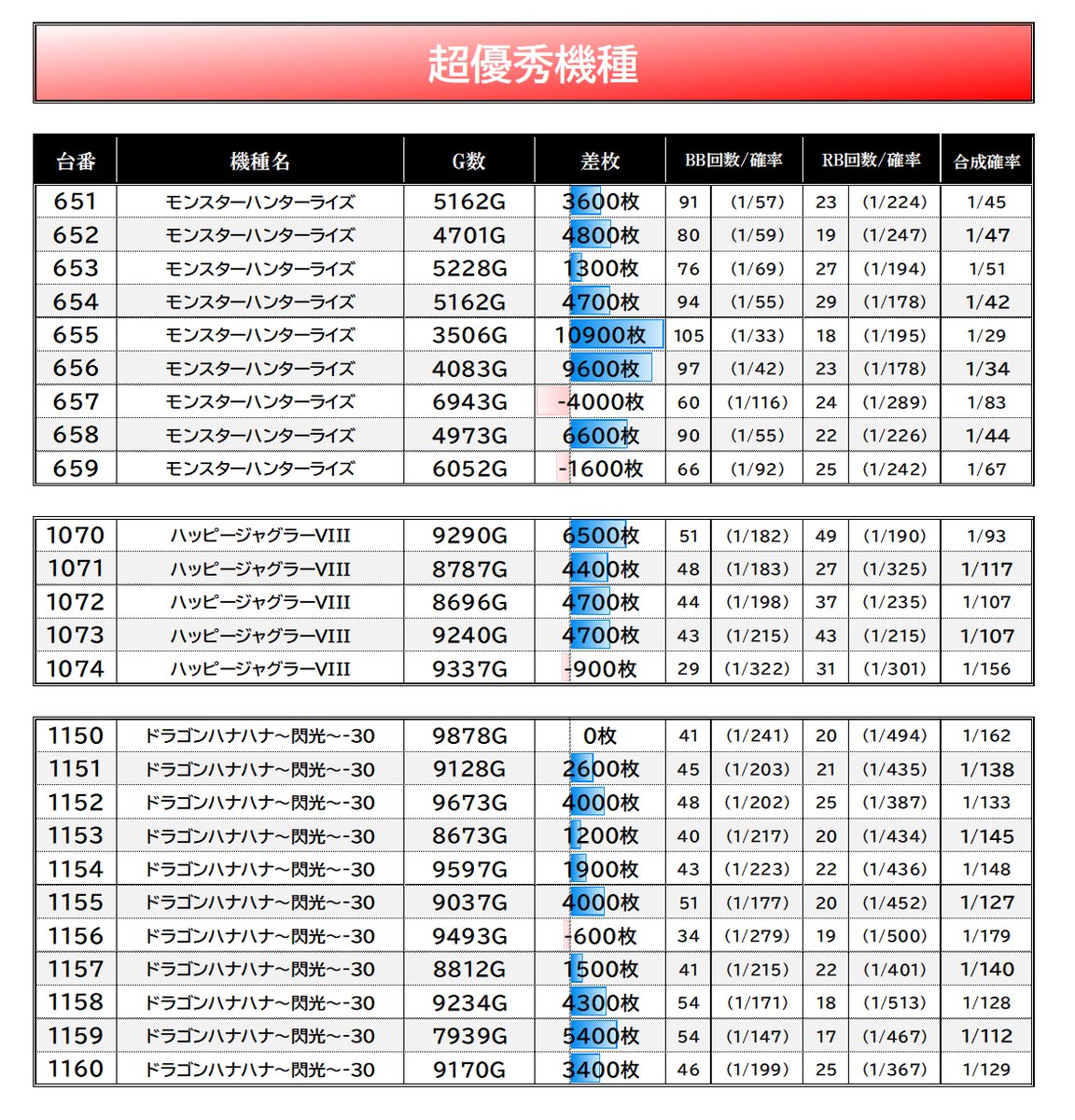 ジャグ/メイン機種中心の選出だったので狙い易かったハズ😎