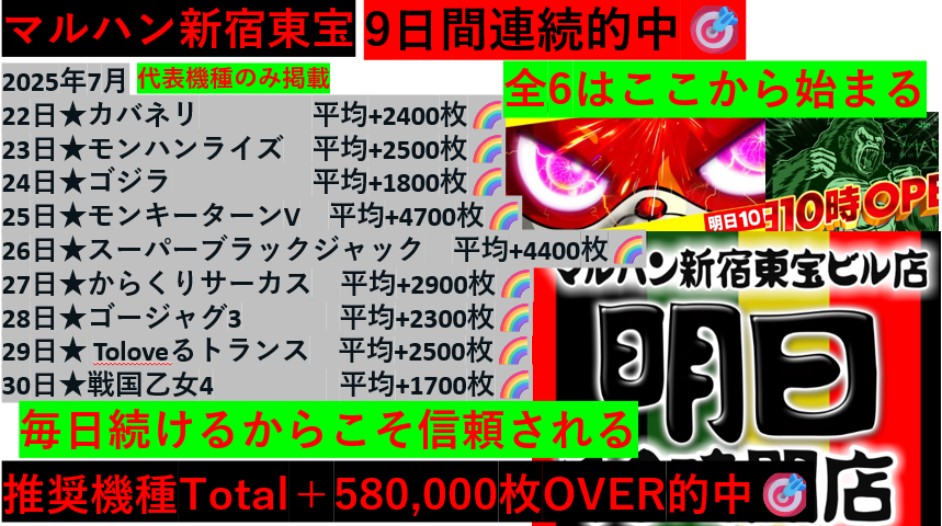(10/25)🅰️マルハン新宿東宝ビルの予想