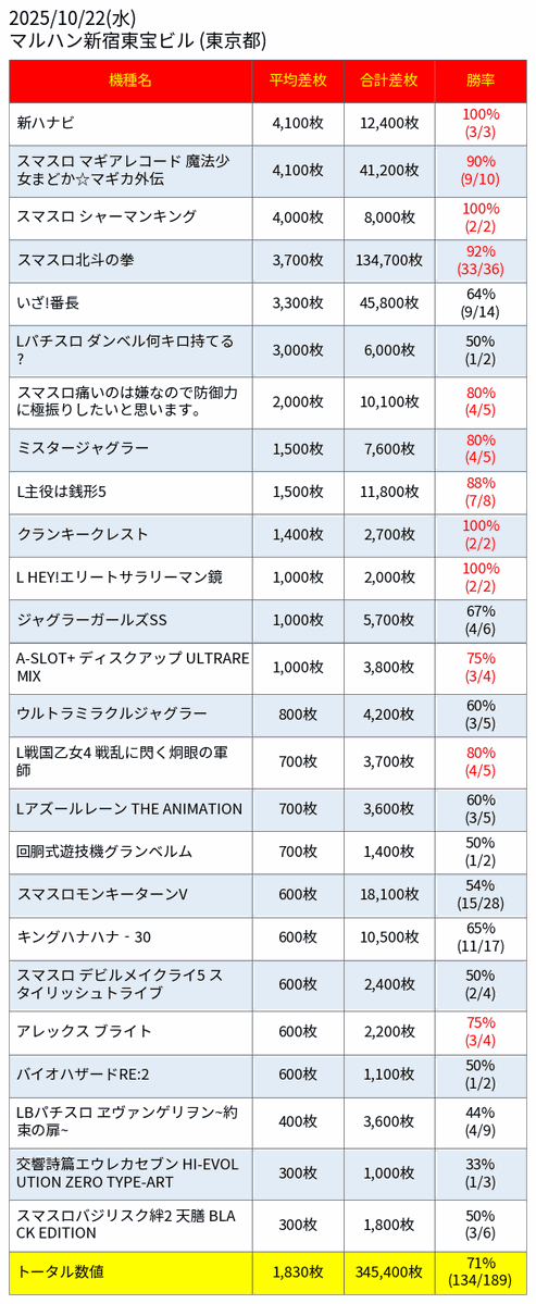 (10/23)🟨🟥⬛️🟩マルハン新宿東宝ビルの予想(完成版)