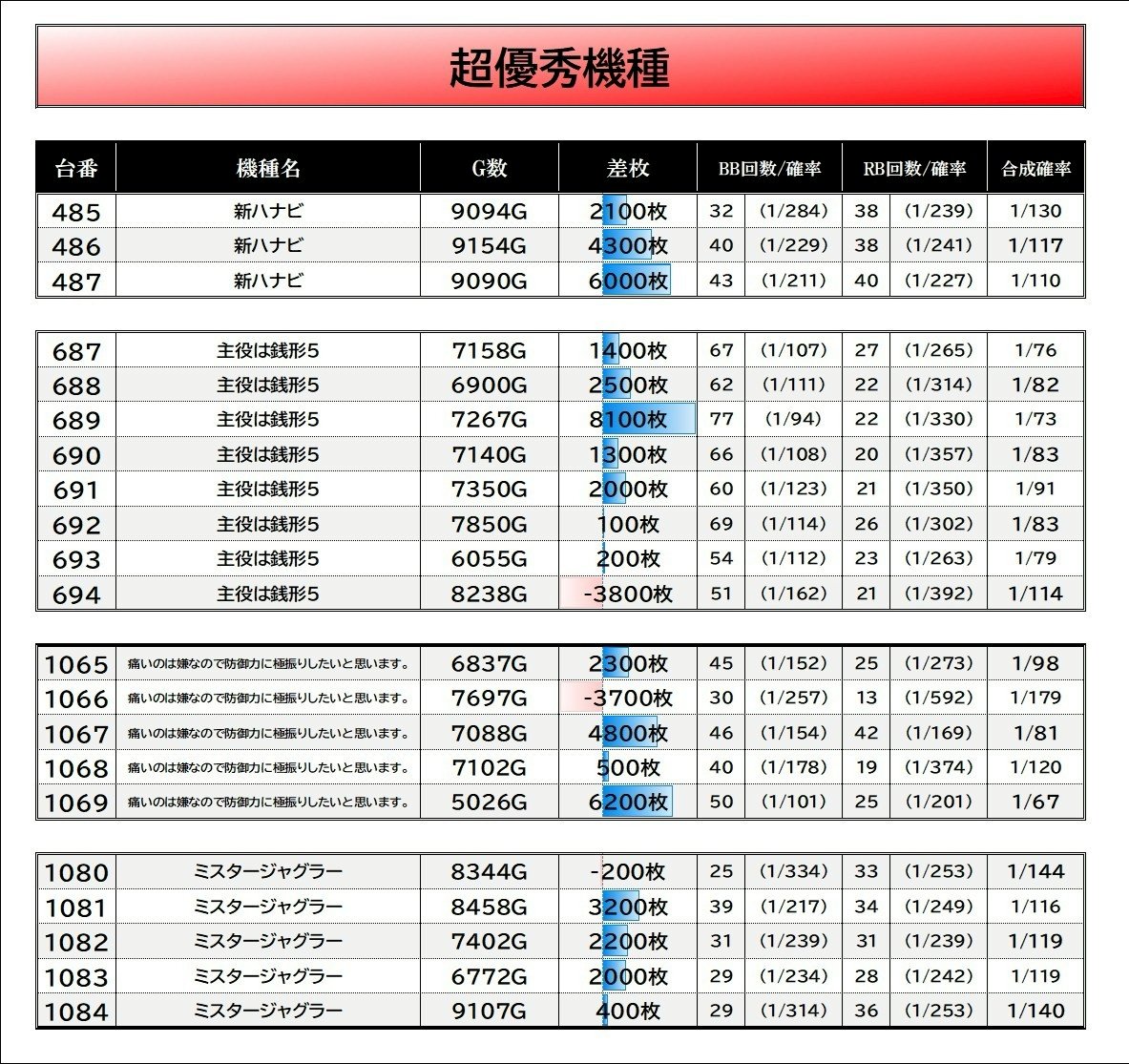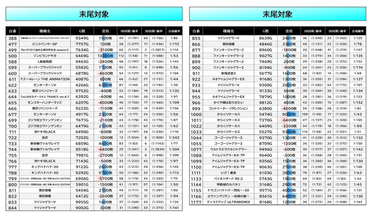 (激)推し機種と回避推奨機種を選定。