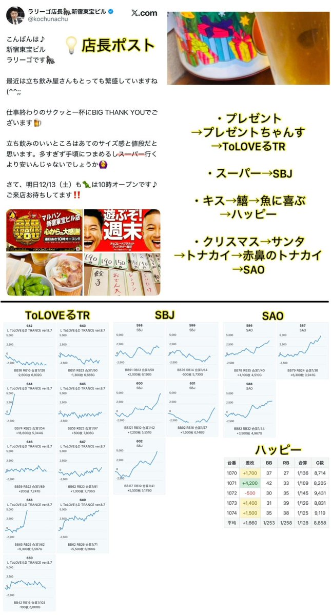 (12/14)🎪🥷👊✌マルハン新宿東宝ビルの予想(完成版)