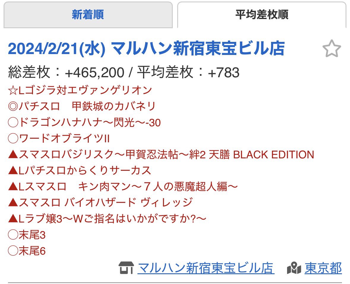 (2/21)🌈🌈🌈マルハン新宿東宝ビル✕新店長就任🫛の予想