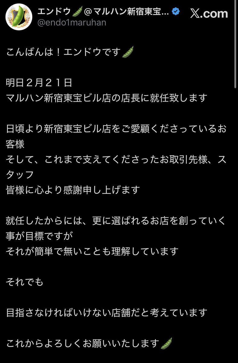 ラリーゴ店長🦍が去った悲しみも束の間。休むことなく激アツなweekの開幕です。エンドウ店長🫛これからよろしくお願いします!