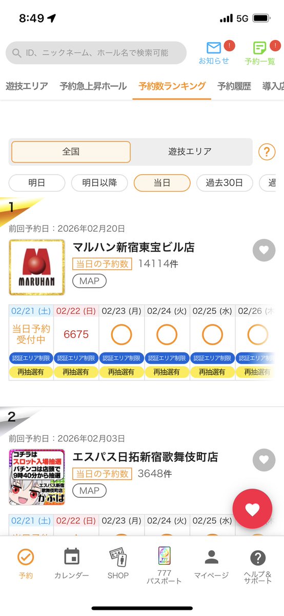 マルハン新宿東宝ビル/メガシティ 横浜町田/エスパス 新宿 歌舞伎 町/渋谷新館/赤坂見附/ピーアーク三田/北千住SSSも予想🔥 https://twitter.com/onePunch0101/status/2024893627571527834