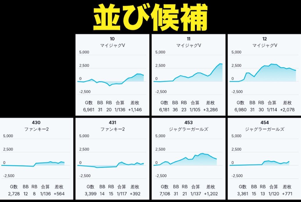 ジャグは各機種から並び候補が複数👍