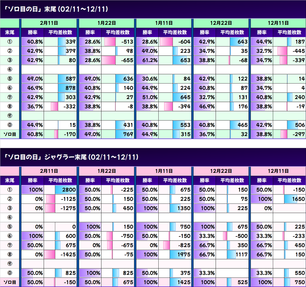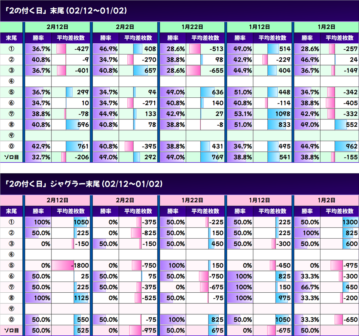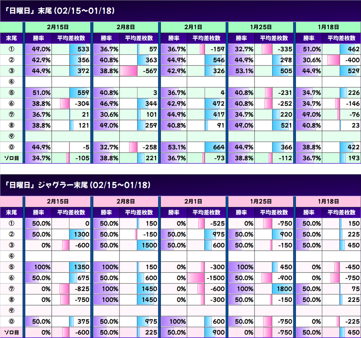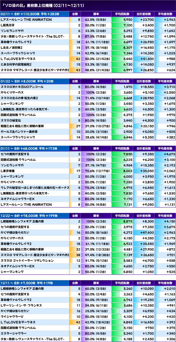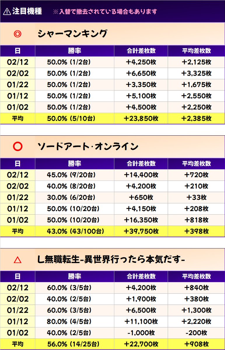 02/02 合計 +21,500枚 平均 +55枚(156/392台)