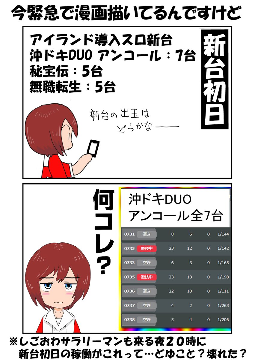アイランド秋葉原にて、無職転生打ってきた😁 指疲れませんかこれ?ピアノ弾いてんのかな😅 またカバネリの様な対応役待ち?ATも…まだ打ち込み足りないからなんともだがクソ台ともいえない普段使わない指と手首の筋力鍛える台w
