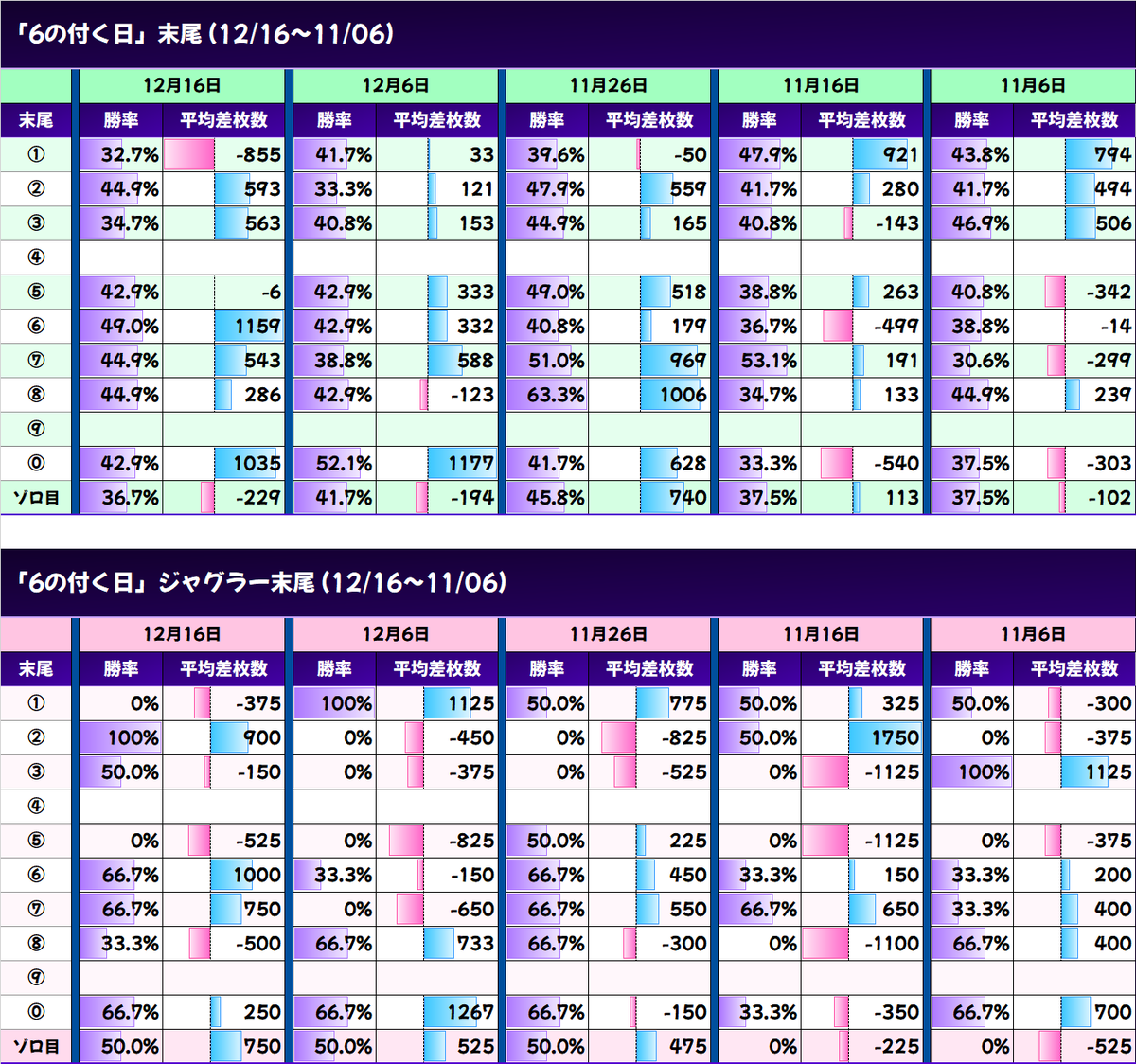 12/06 合計 +127,000枚 平均 +326枚(163/389台)