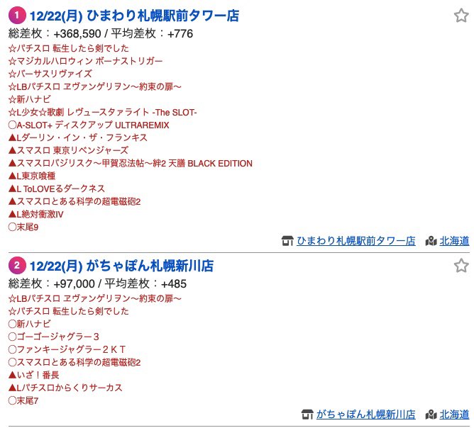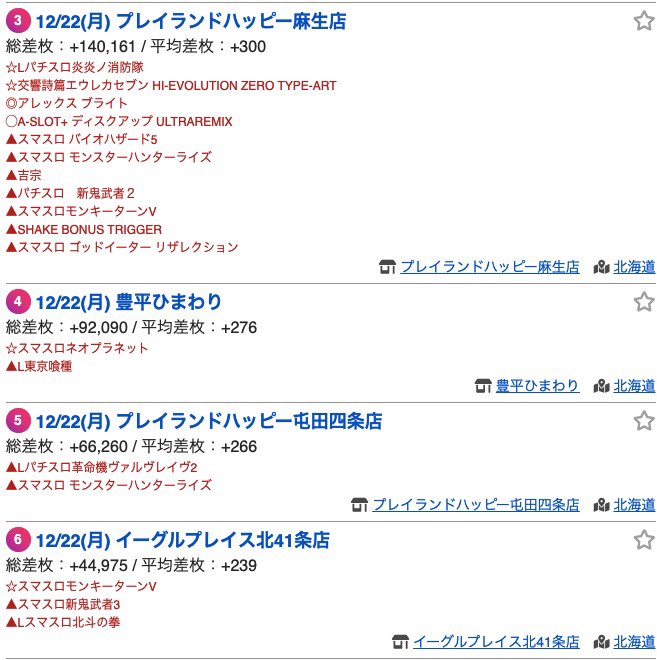 ⑥プレイランドハッピー厚別 https://twitter.com/kamuislot1/status/2002297012574957771