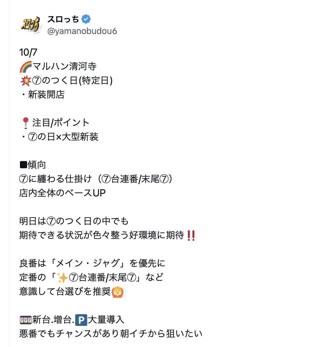💥⑦のつく日(特定日) https://twitter.com/yamanobudou6/status/1975176977448656925