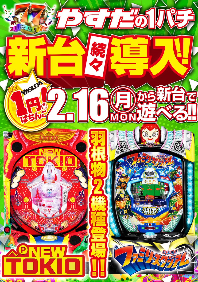 投稿本文: やすだ東大宮店 ■2月17日(火)新装10時開店! ■2月の新装開店も”やすひが”にお任せ!! ■eからくり■YASUDAグループ合計77台導入! https://39547.p-world.jp さらに表示
