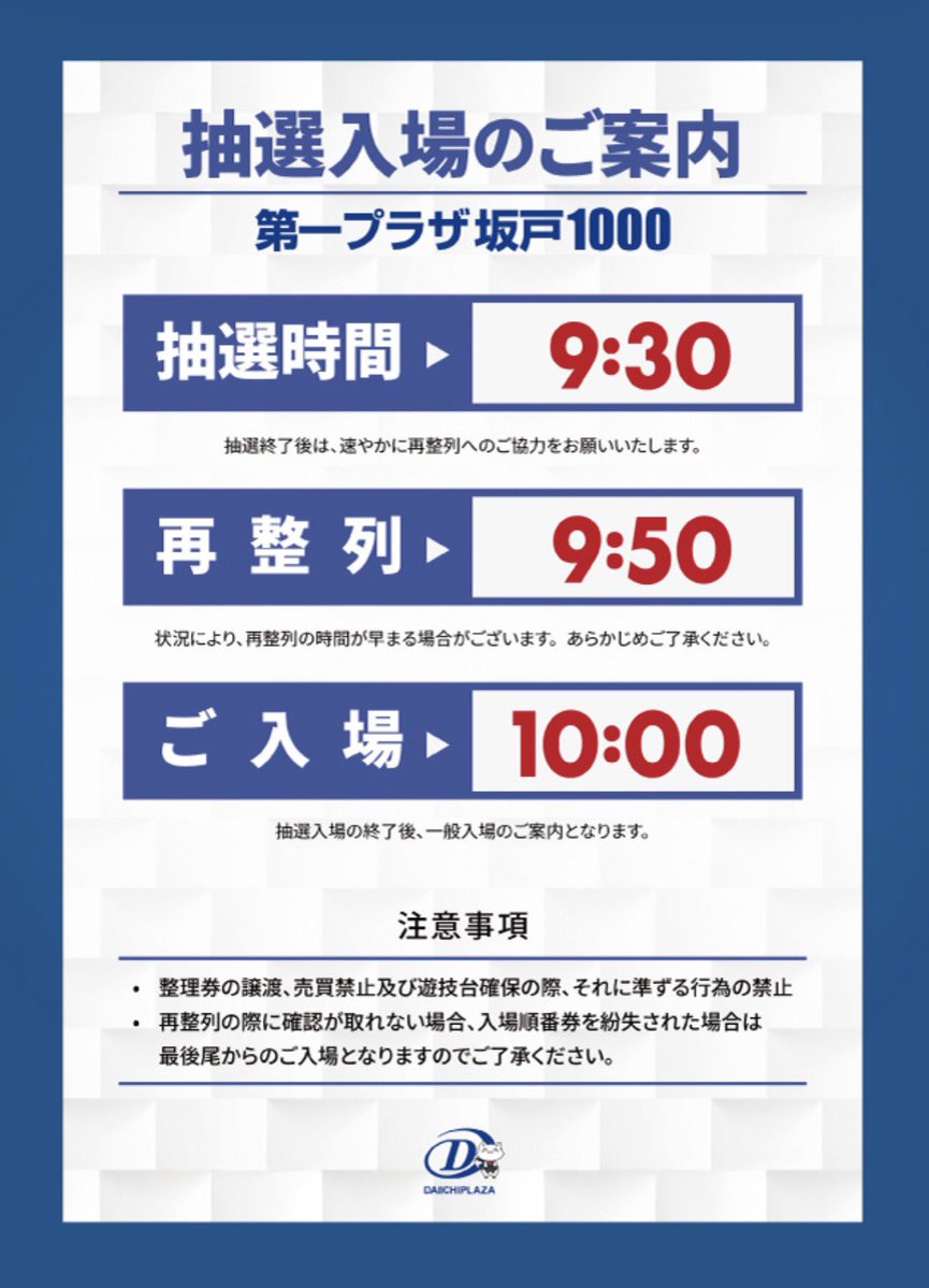 2月22日(日)に埼玉県坂戸市の「第一プラザ坂戸1000」(@1pla_1000 )さんへ来店されます。