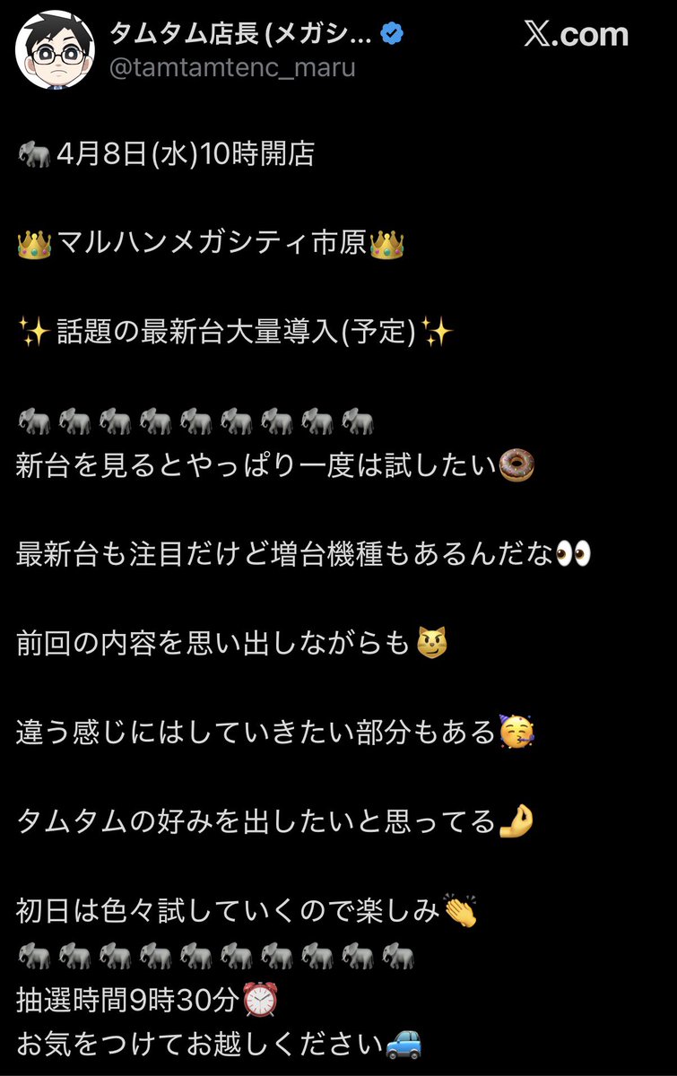 投稿本文: 4/8⛳️ マルハンメガシティ市原