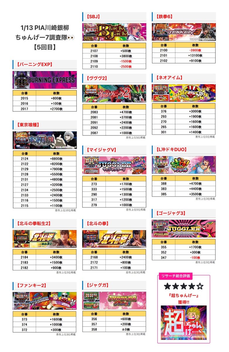1/13は★★★★☆『超ちゅんげー』獲得‼️