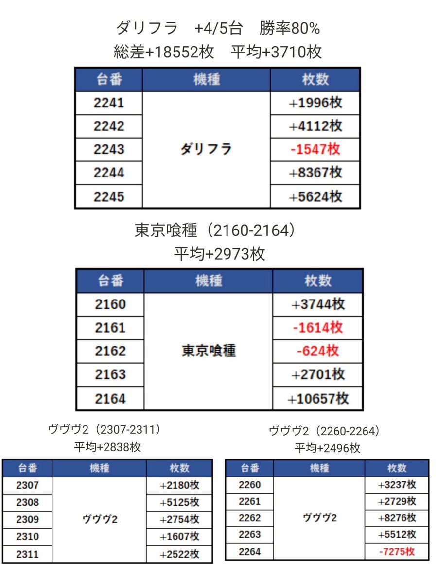 総差+18552枚 平均+3710枚