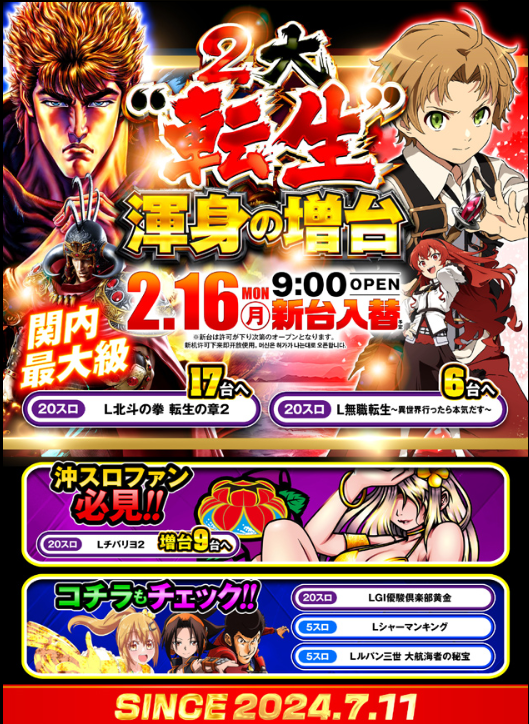 🆕今週増台済みの『北斗転生2』や『無職転生』ももちろん候補に👍