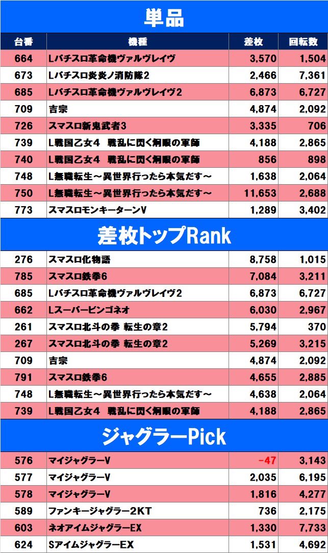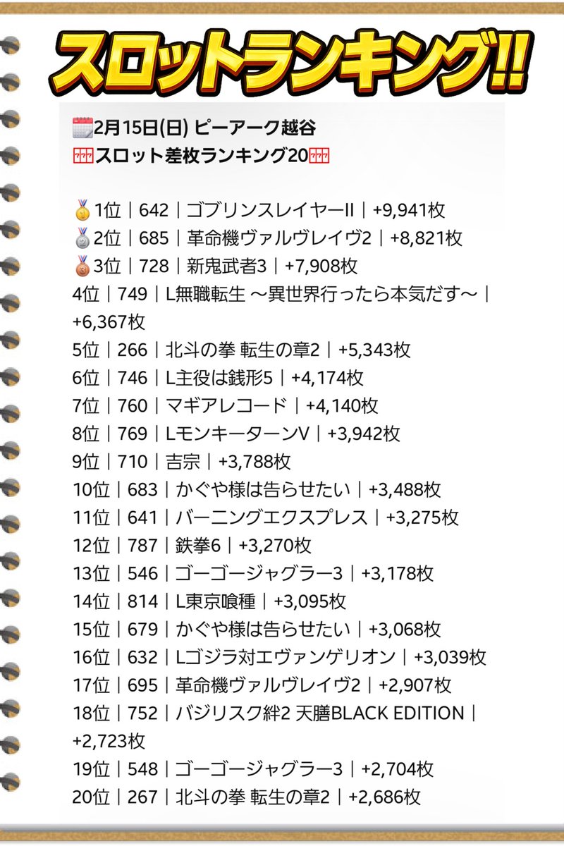 2/14(土) ピーアーク越谷 スロット差枚レポート