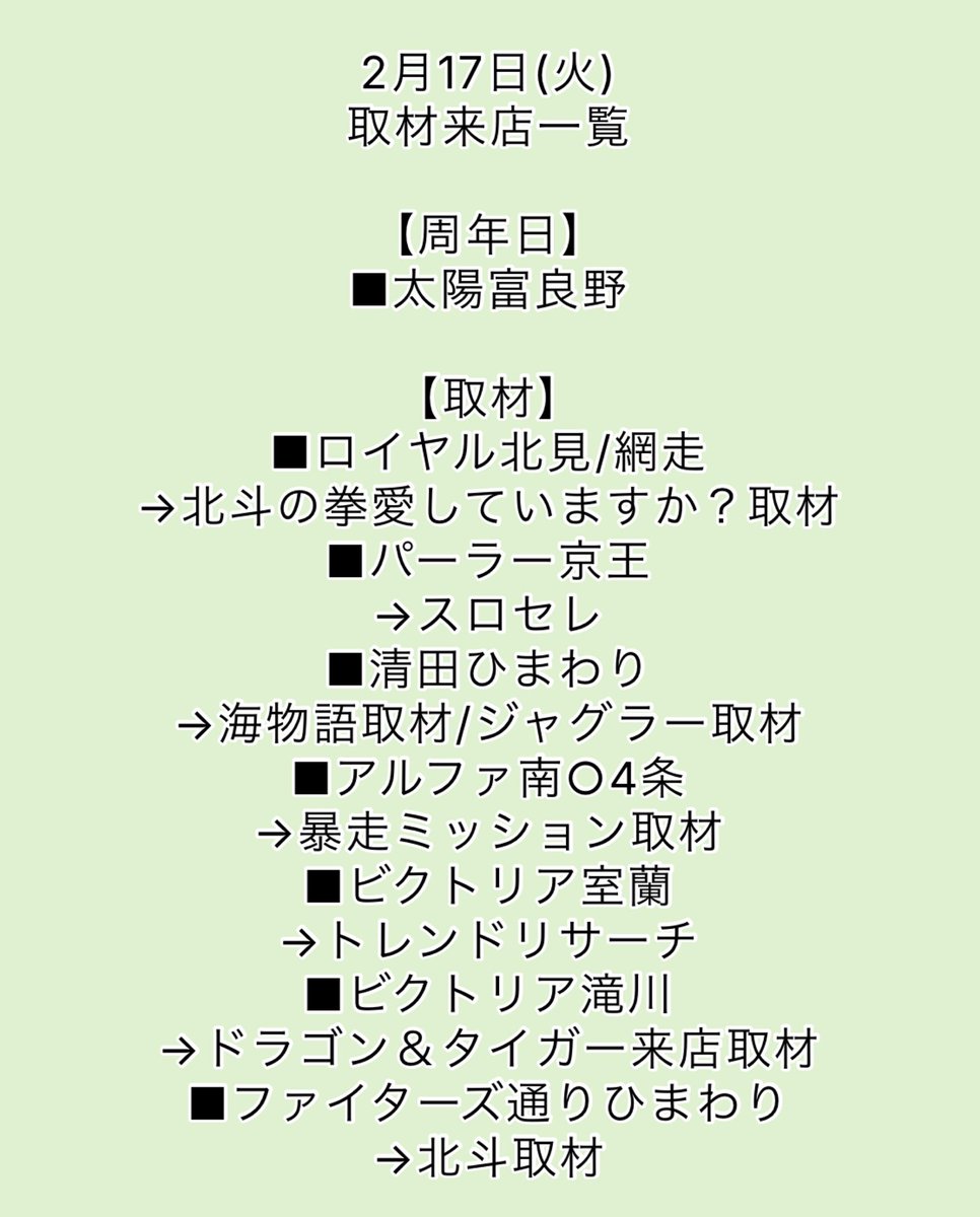 🐺2/17北海道店舗リスト🐺