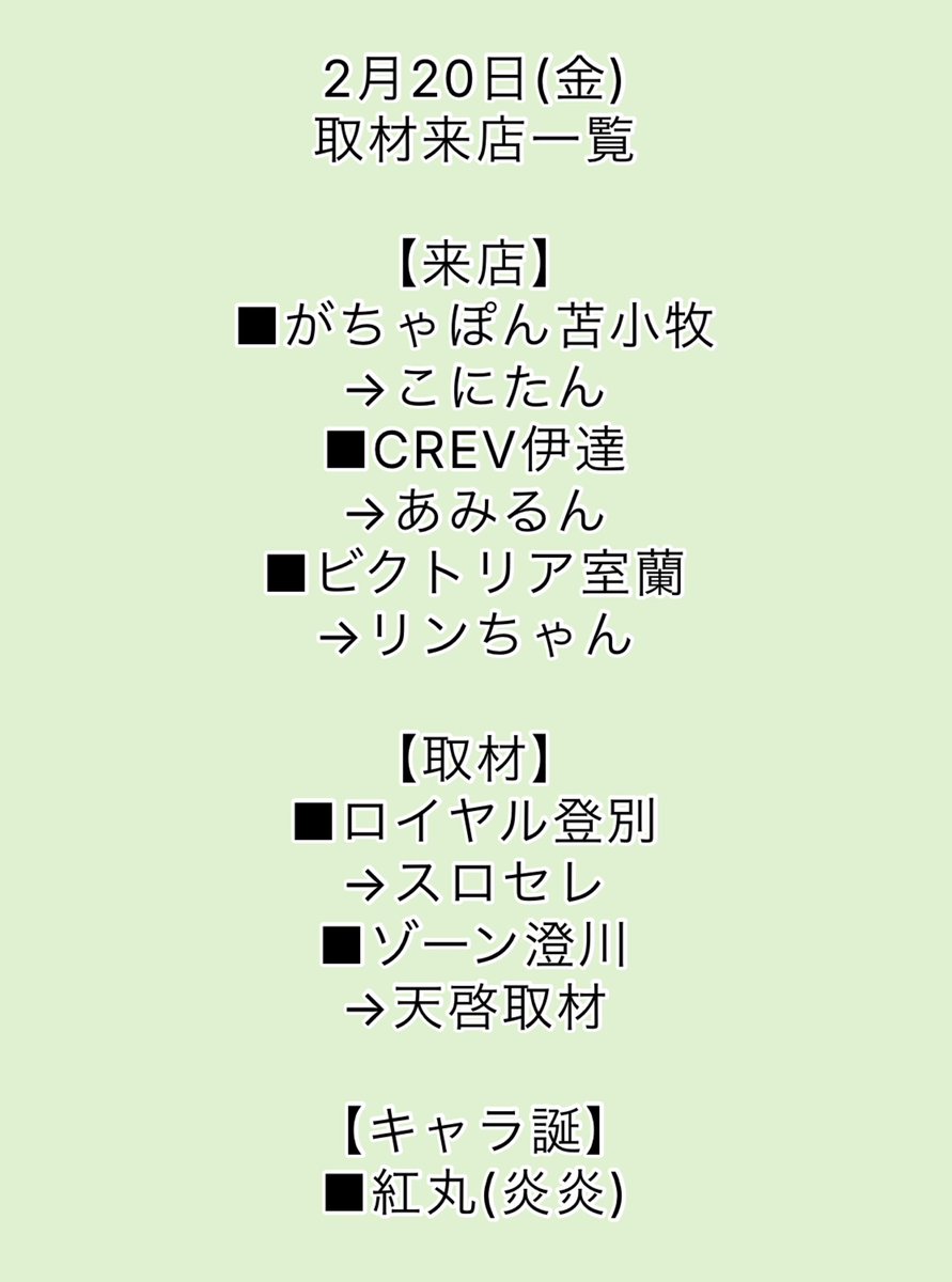 🐺2/20北海道店舗リスト🐺