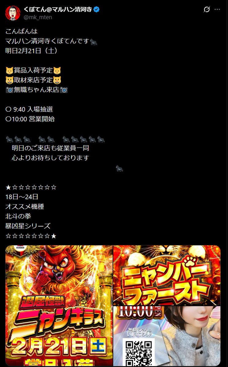 マルハン清河寺くぼてんです🦍