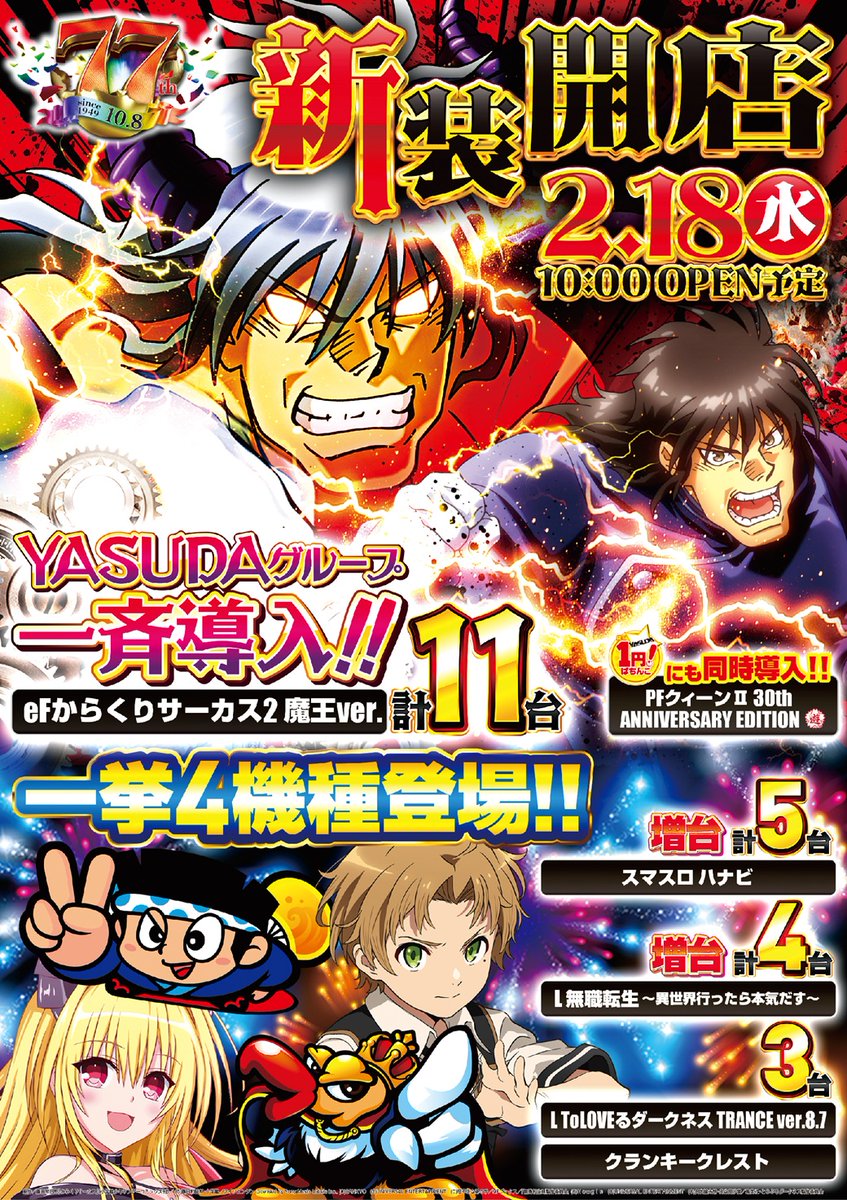 🎯全、4並び、1/2、単品(4台以上機種) https://twitter.com/jack_nova_1/status/2023018997835550926