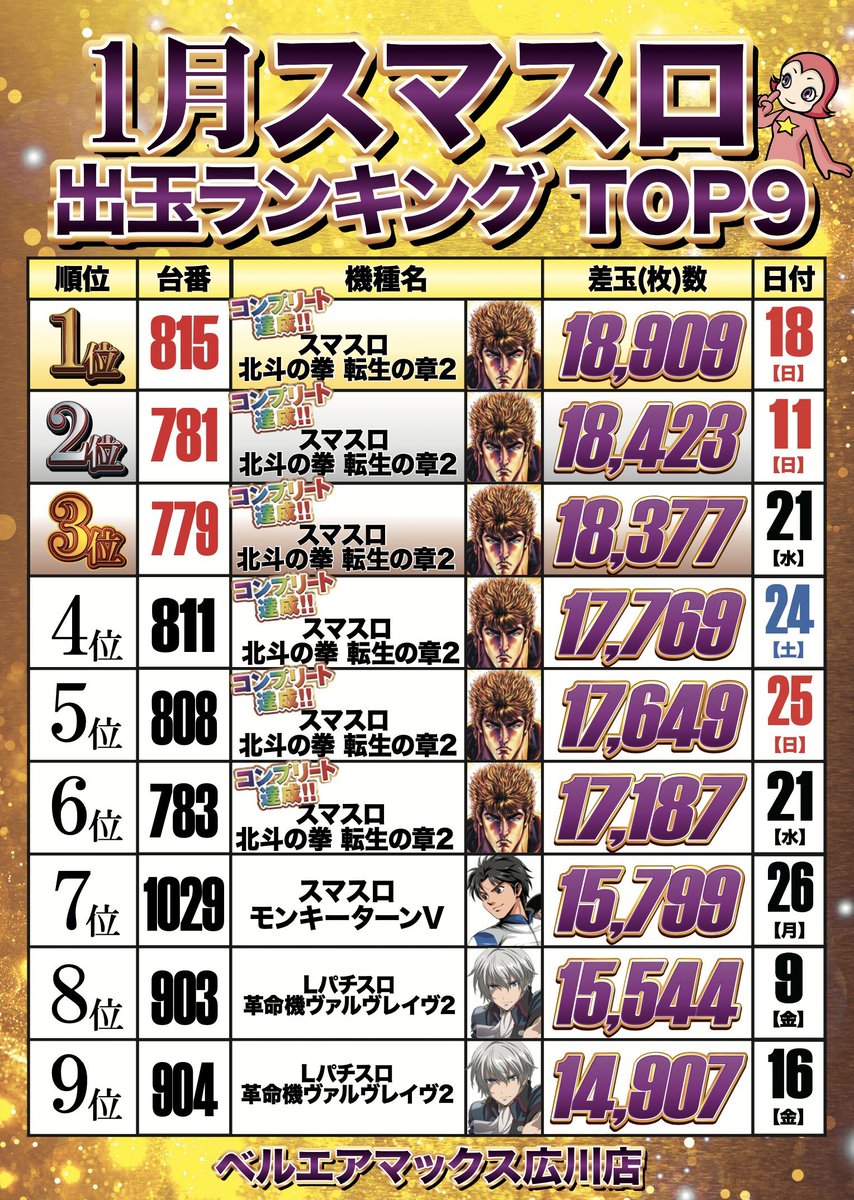 スマスロ北斗の拳転生2コンプリート情報が凄いっU^q^U(1月ランキング情報)